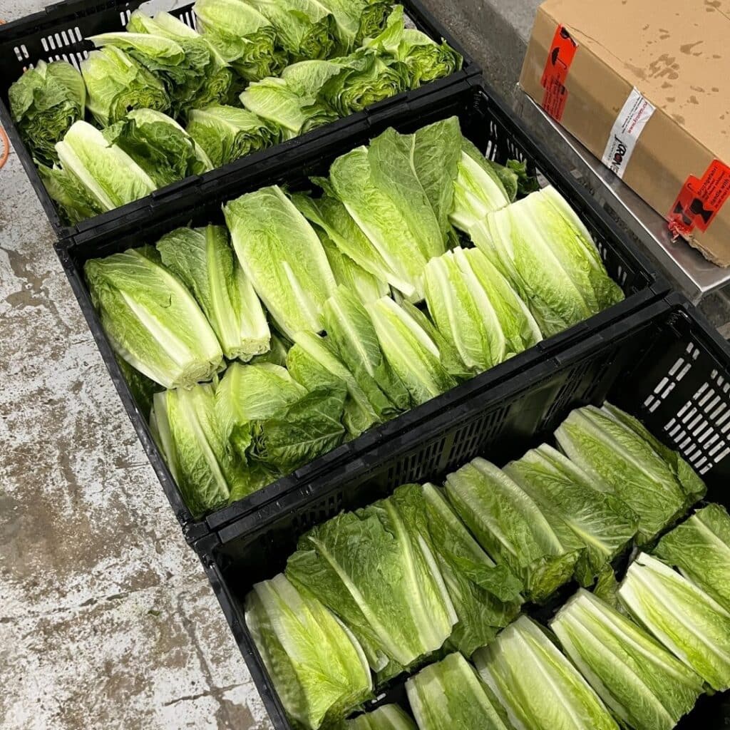 And they’re right. While whole-head romaine works beautifully in commercial kitchens and smaller programs, most school food operations don’t have the staff, time, or infrastructure to wash, chop, dry, and store romaine at scale. The result is that organic romaine lettuce, despite being one of the most popular salad greens and widely grown on local farms, has remained out of reach for the majority of districts. With such limited options, districts rely on conventional pre-chopped romaine for salad greens.