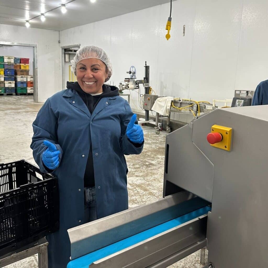 This effort has been strengthened by a collective of organic lettuce farmers who have grown alongside us through every step of the process – led by Yadira Mendiola, owner and farmer extraordinaire behind The Queen of Organic Vegetables Organic Farm. From planning harvest windows to testing pack sizes, these Central Coast growers have shown remarkable tenacity, flexibility, and commitment to this work. Their belief in the vision of organic school meals and willingness to collaborate, innovate, and inspire us are the foundation that has made this project possible. Behind every three-pound bag of chopped romaine are the organic farmers who care deeply about the land, the kids in our schools, and the communities around them. With that partnership in place, the next challenge was ensuring the processing infrastructure could match the farmers’ commitment.